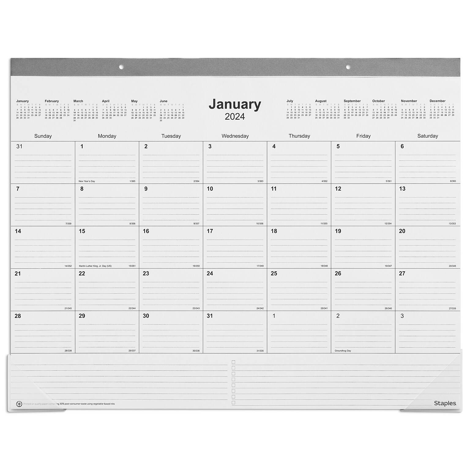 2024 Staples 22" x 17" Desk Pad Calendar, Gray (ST5970124)