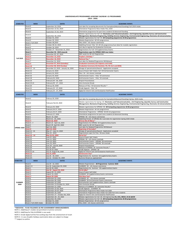 Academic Calendar CU AY2019 20 Download Free PDF Academic Term