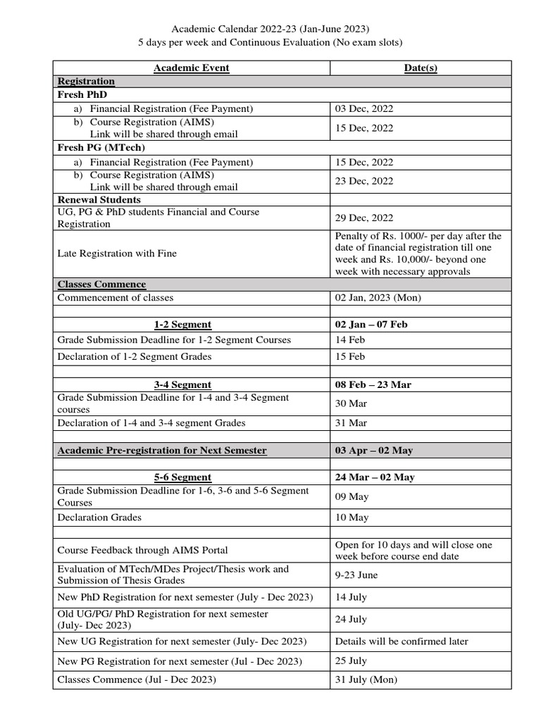 Academic Calendar IIT Mandi 2022 23 and ODD Semester AY 2023 24 PDF