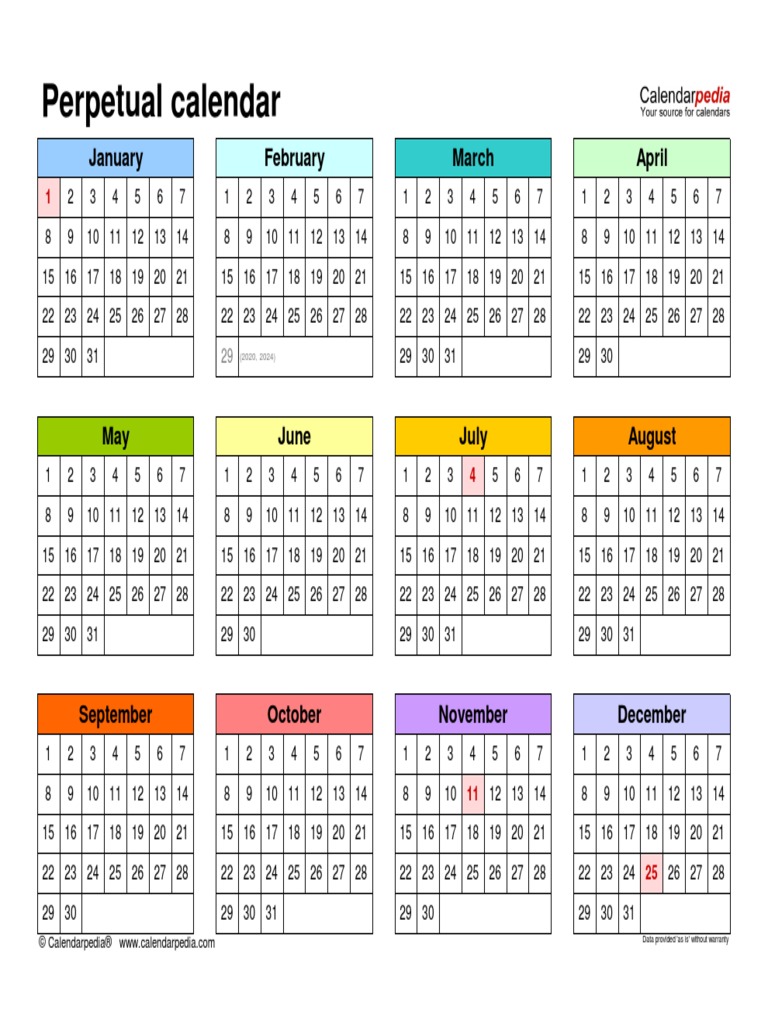 Perpetual Calendar Landscape Year at A Glance PDF
