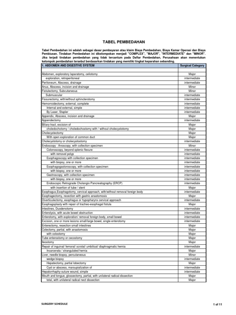 Tabel Pembedahan AMFS PDF Coronary Artery Bypass Surgery Surgery