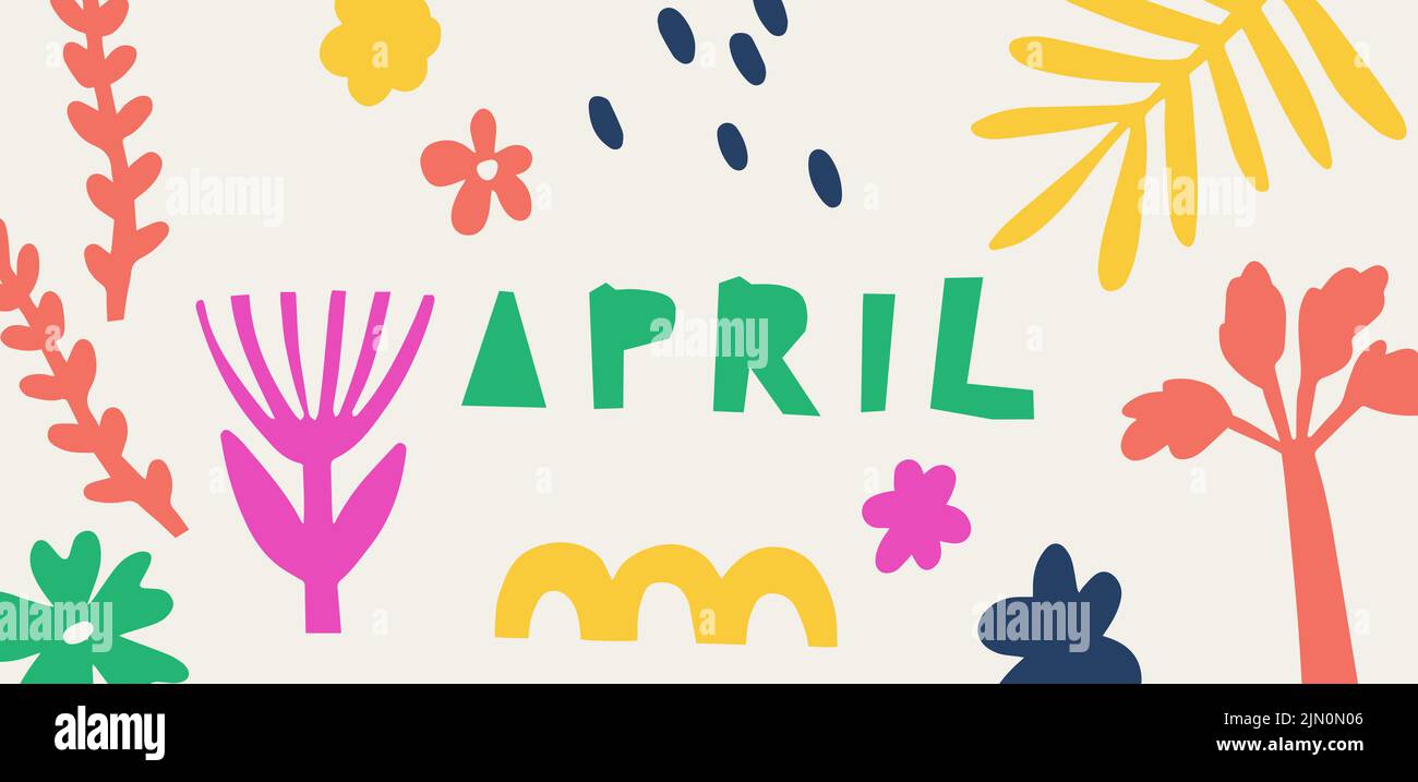 April. Abstract background with botanical doodles. Vector multicolor