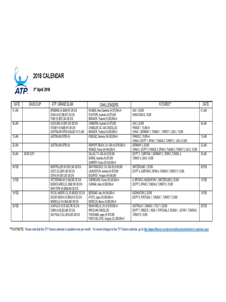 Atp Challenger Tour Calendar PDF Games Of Physical Skill Grand