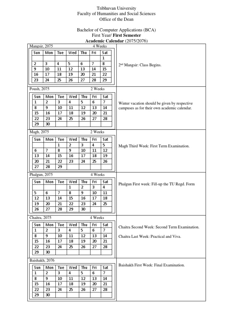 Academic Calendar (BCA) 2075 76 PDF Academic Term Educational