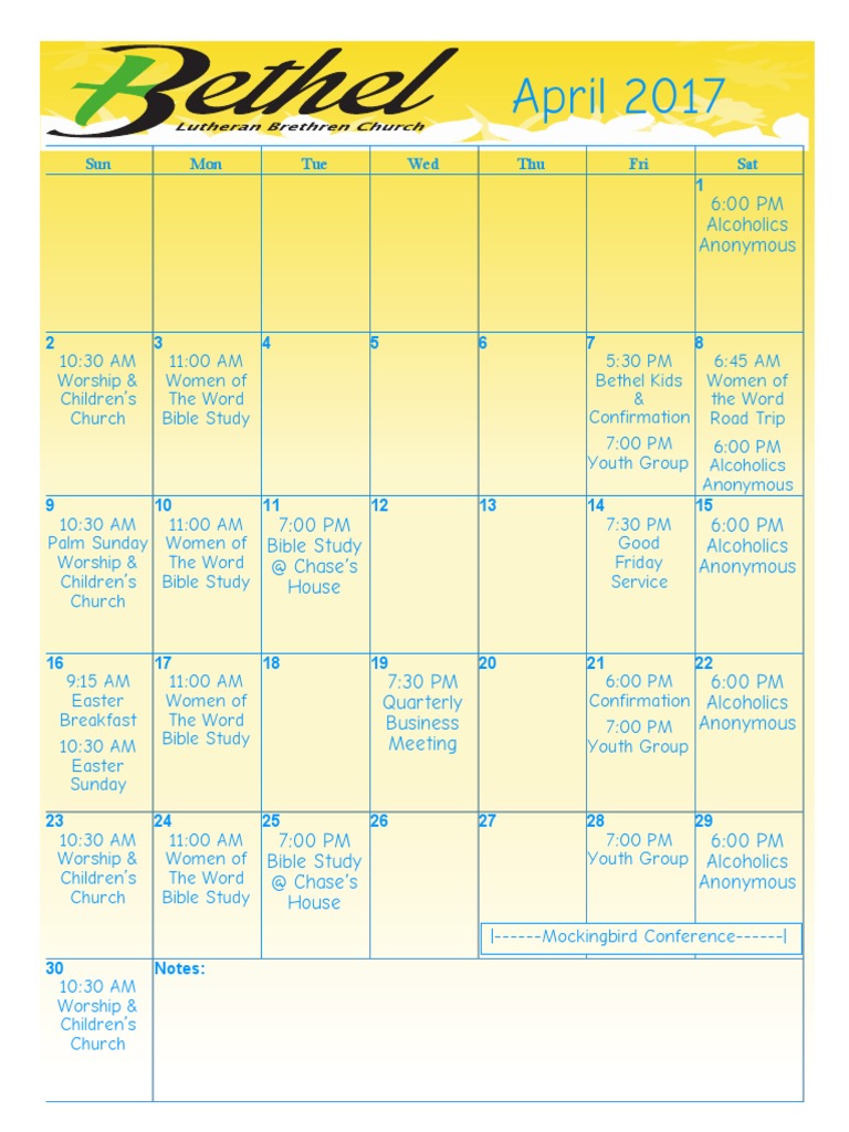 Bethel Calendar April 2017 PDF Christian Worship And Liturgy