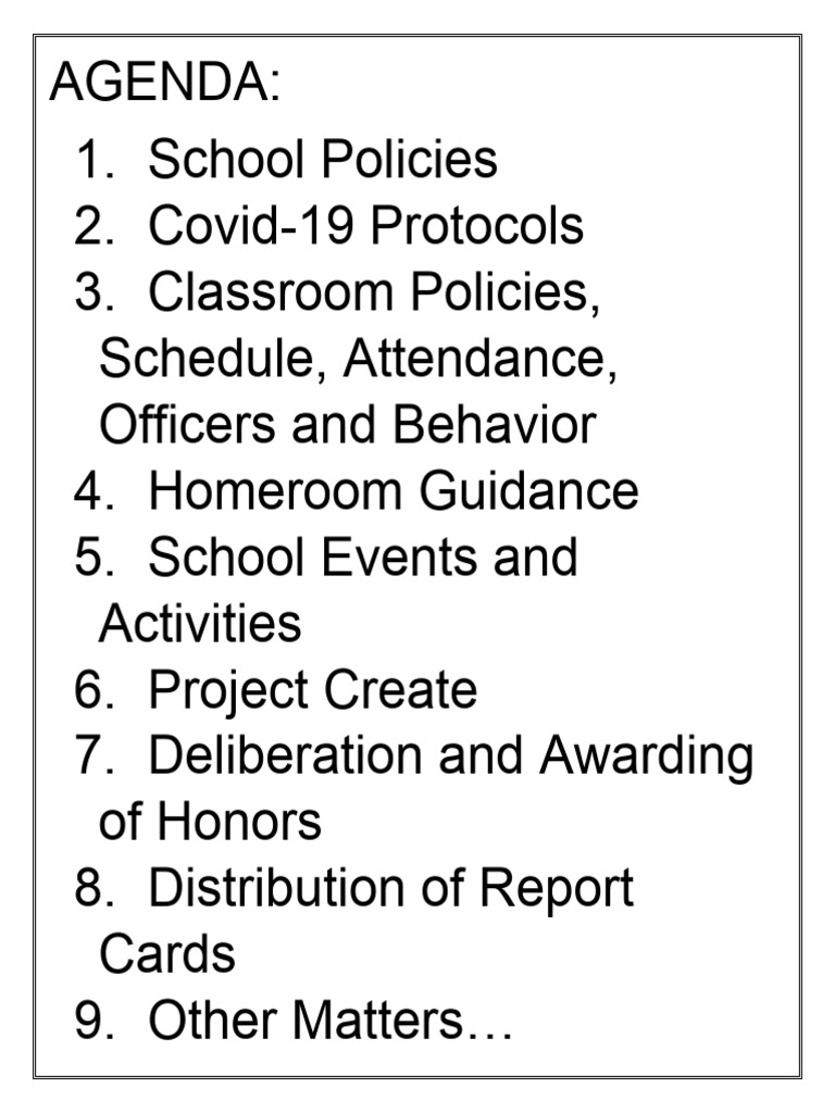 Agenda of Meeting Bnhs PDF