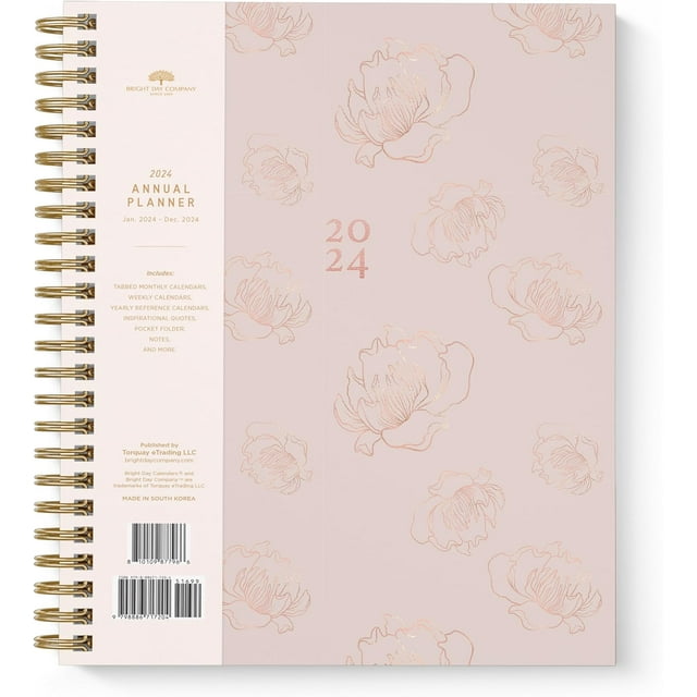 Bright Day Calendars Rose Gold Floral Annual Planner 2024 Edition