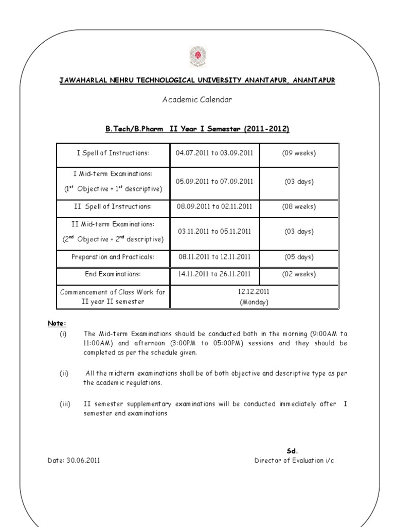 BTech BPharm Academic Calendar 201112 PDF Academic Term