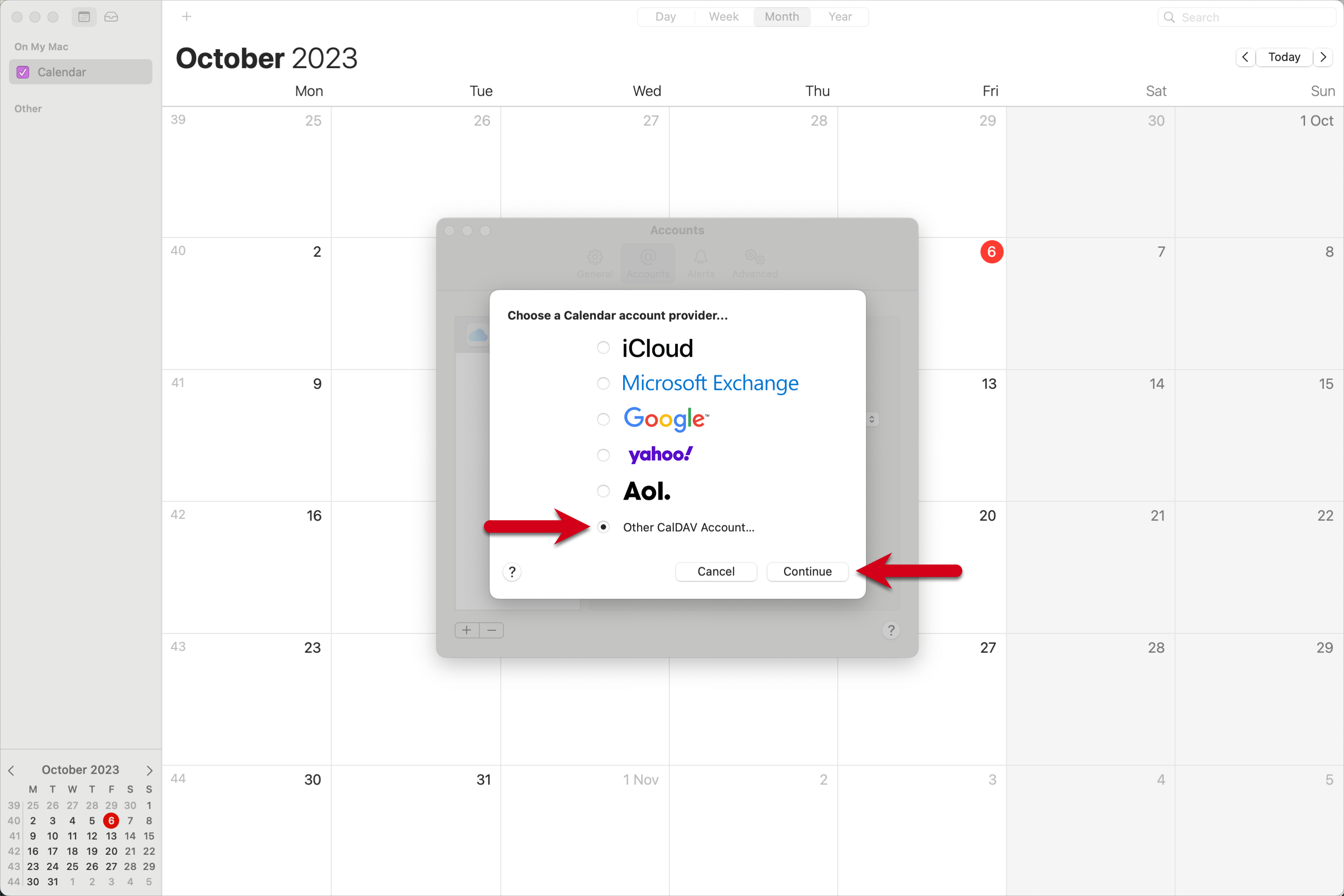 How do I sync the calendar with my Mac using CalDAV? Support