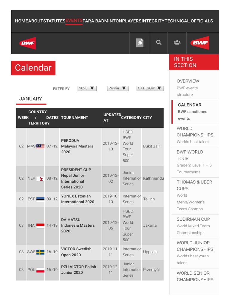 Calendar Bwf
