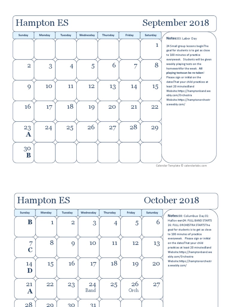 Hampton 2018 2019 Calendar PDF Holidays Observances