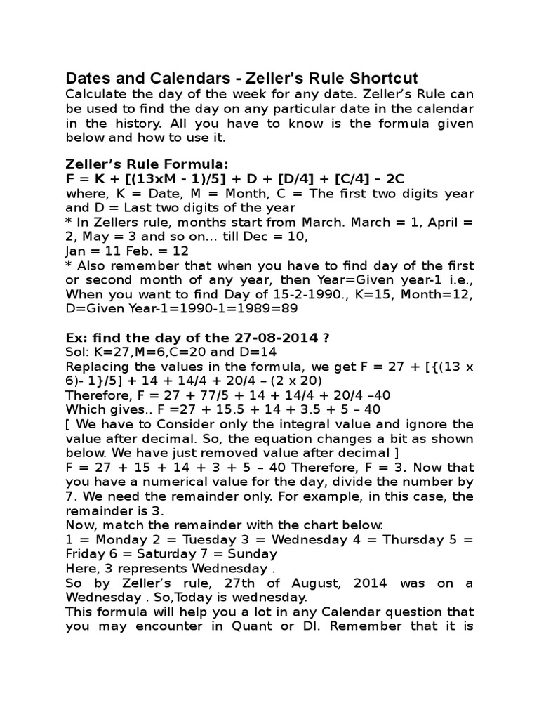 Dates and Calendars Zeller's Rule Shortcut Download Free PDF