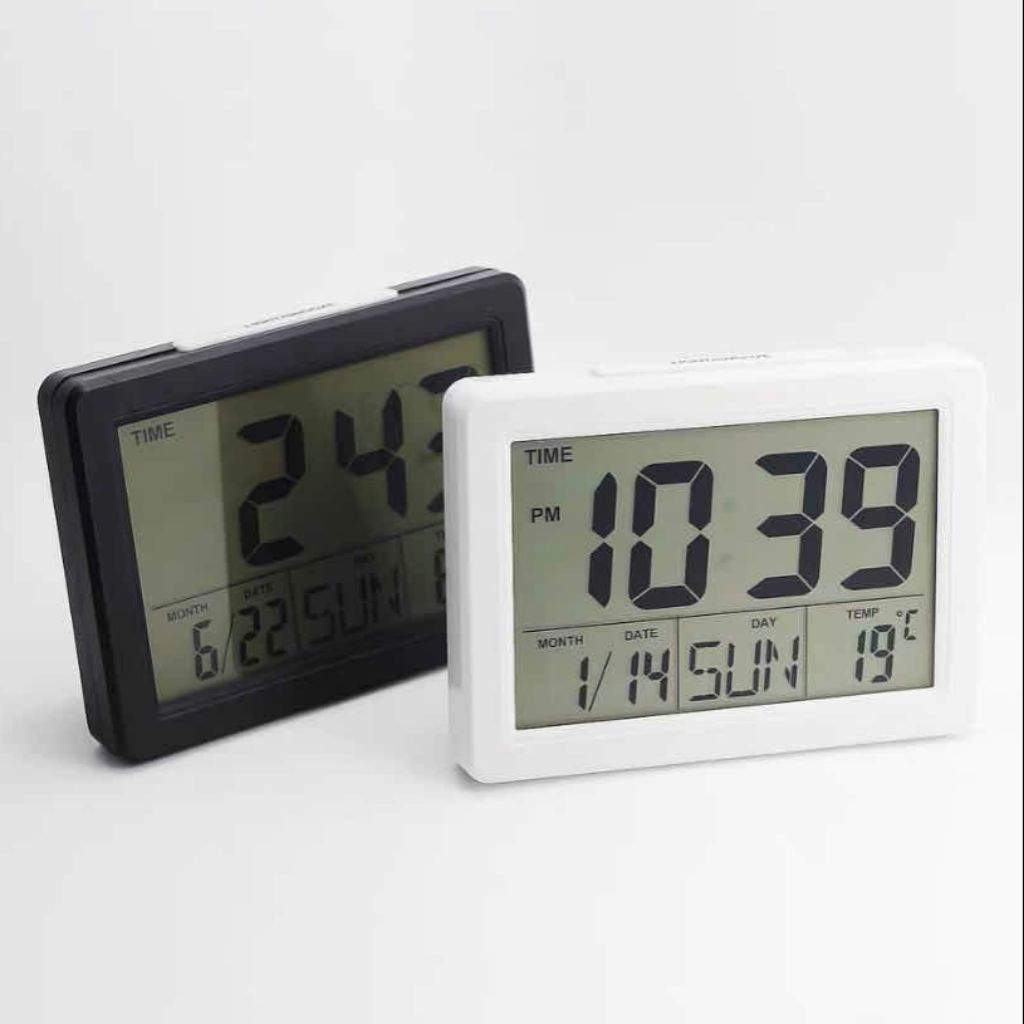 Black LCD Digital Table Clock Calendar Temperature Desktop Display