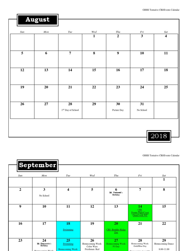 20182019 Cbi Calendar PDF Leisure Sports
