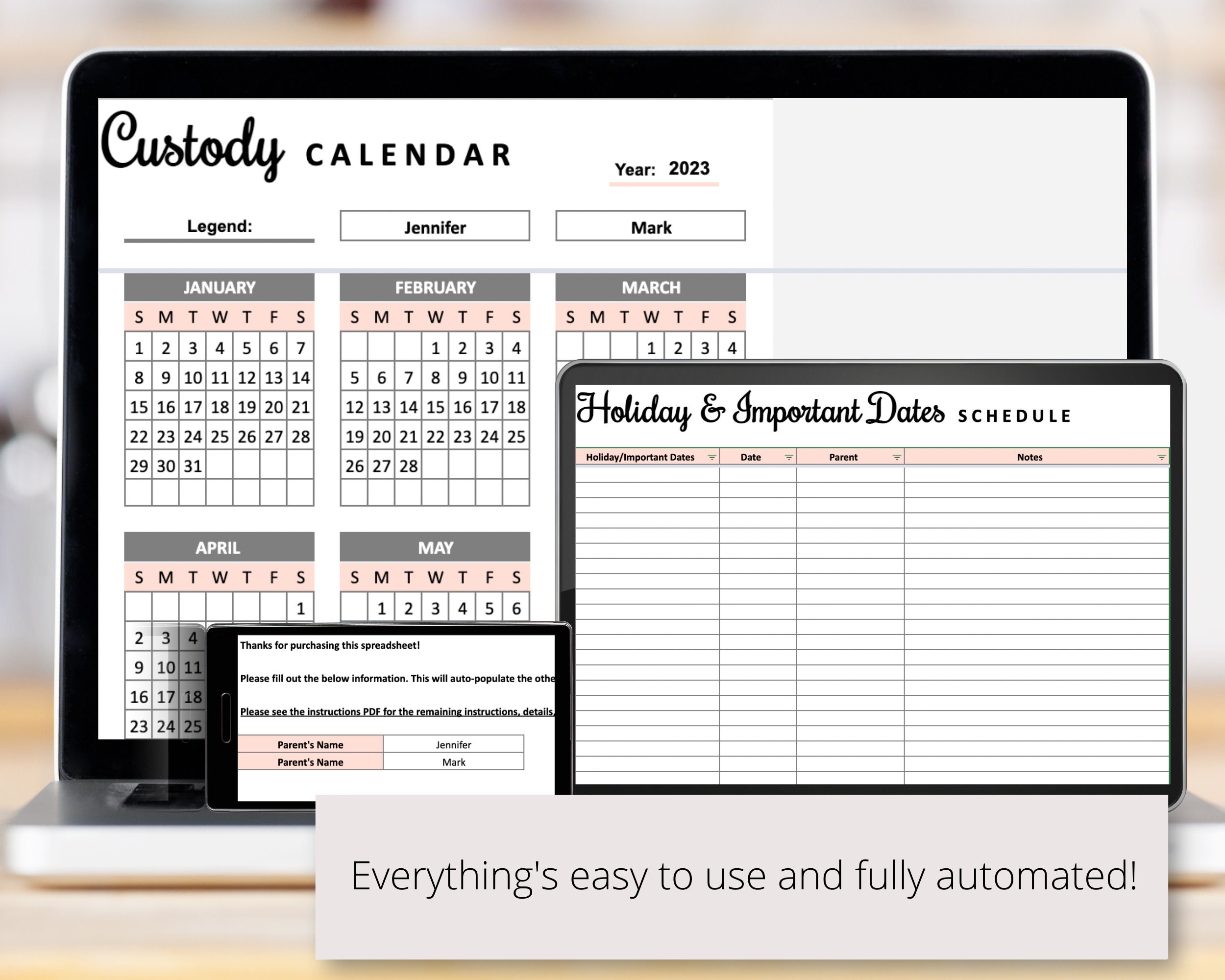 Editable & Printable Coparenting Calendar Expense Tracker Custody