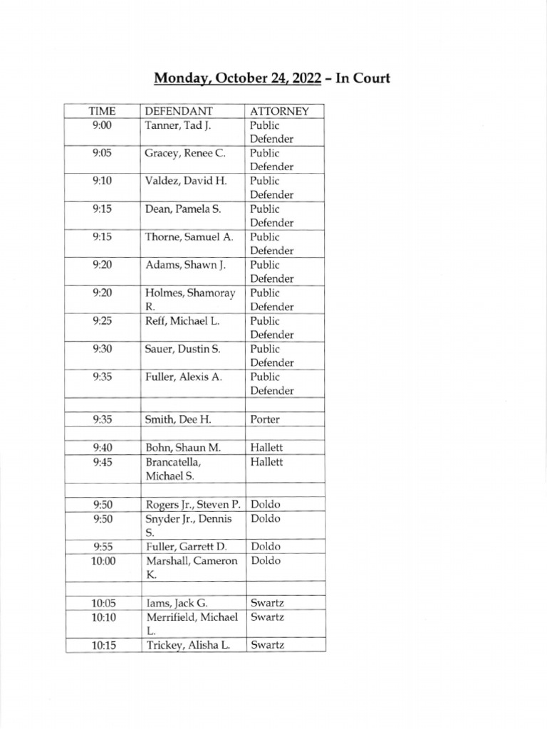 Jefferson County Court Calendar Oct. 24, 2022 PDF
