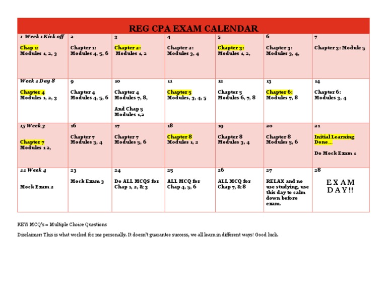 Reg Cpa Exam Calendar PDF Multiple Choice Psychological Schools