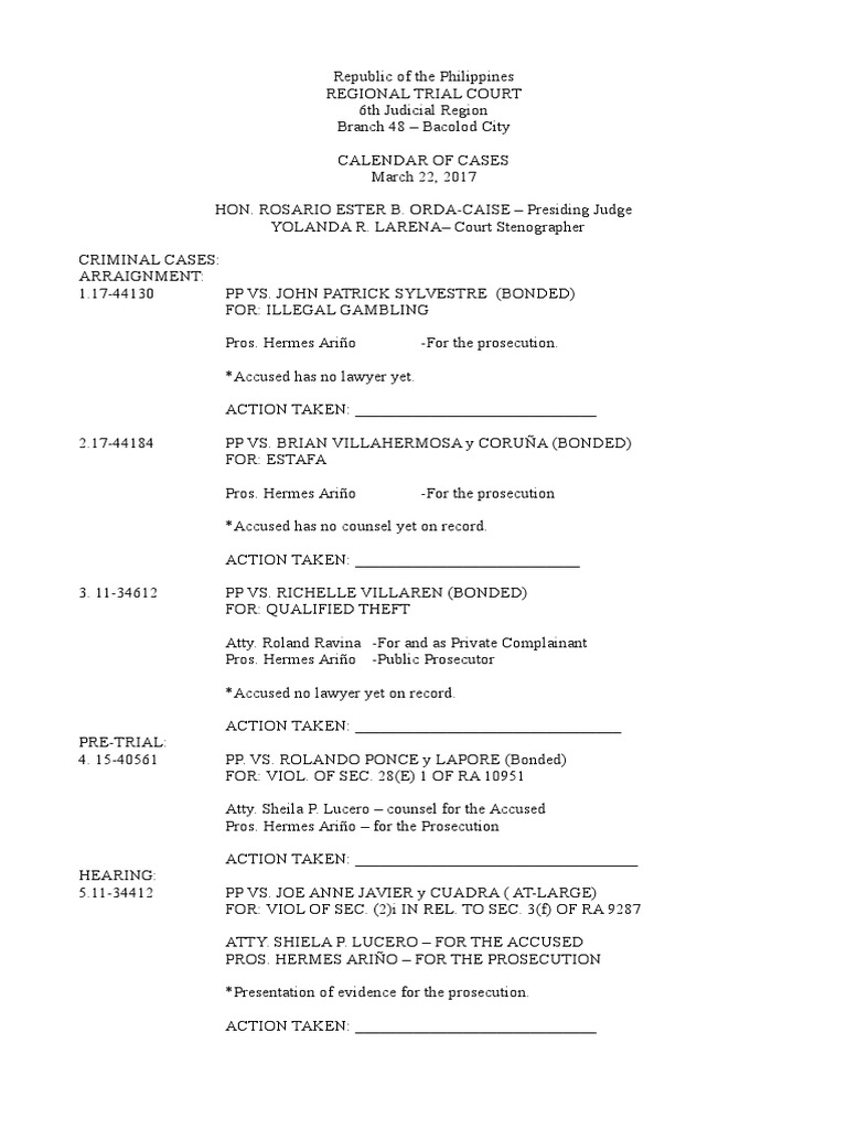 Calendar of Cases PDF Prosecutor Criminal Justice