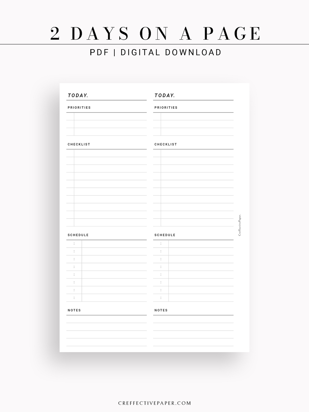 D101 Day on 2 Pages, Daily Planner Printable Insert