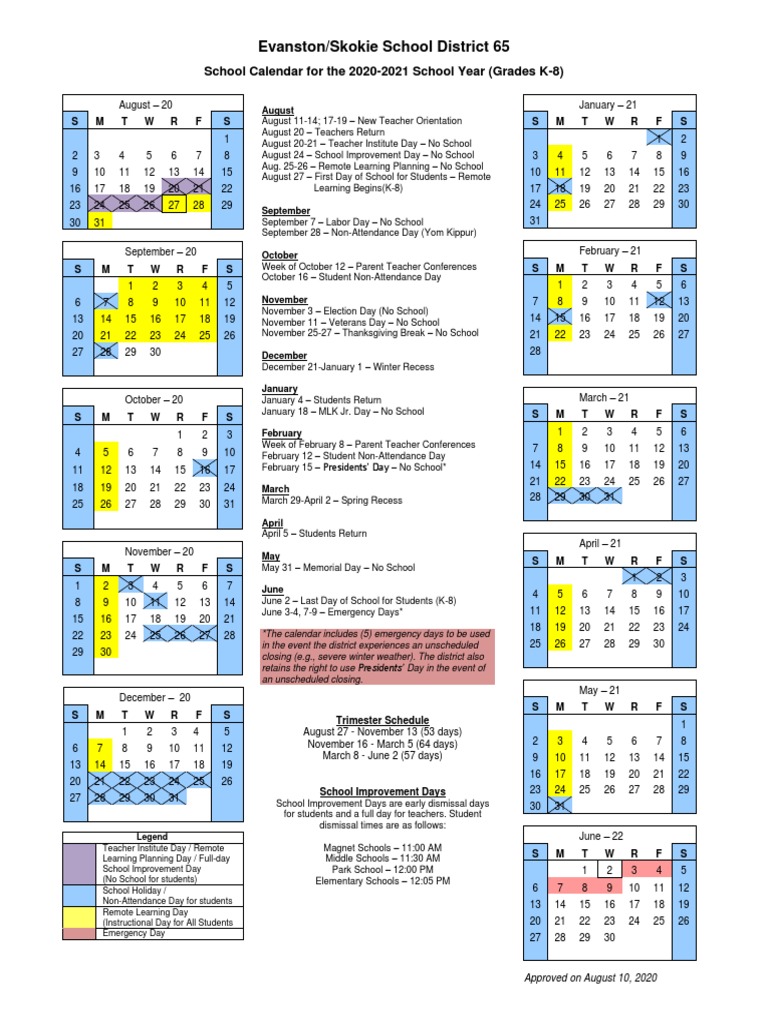 Evanston District 65 Calendar