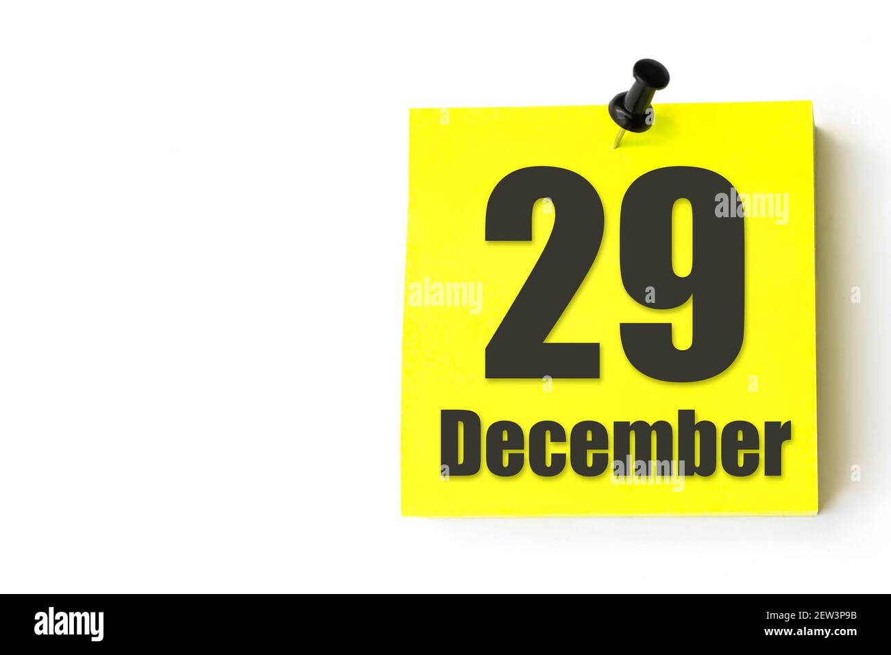 December 29th. Day 29 of month, Calendar date. Yellow sheet of the