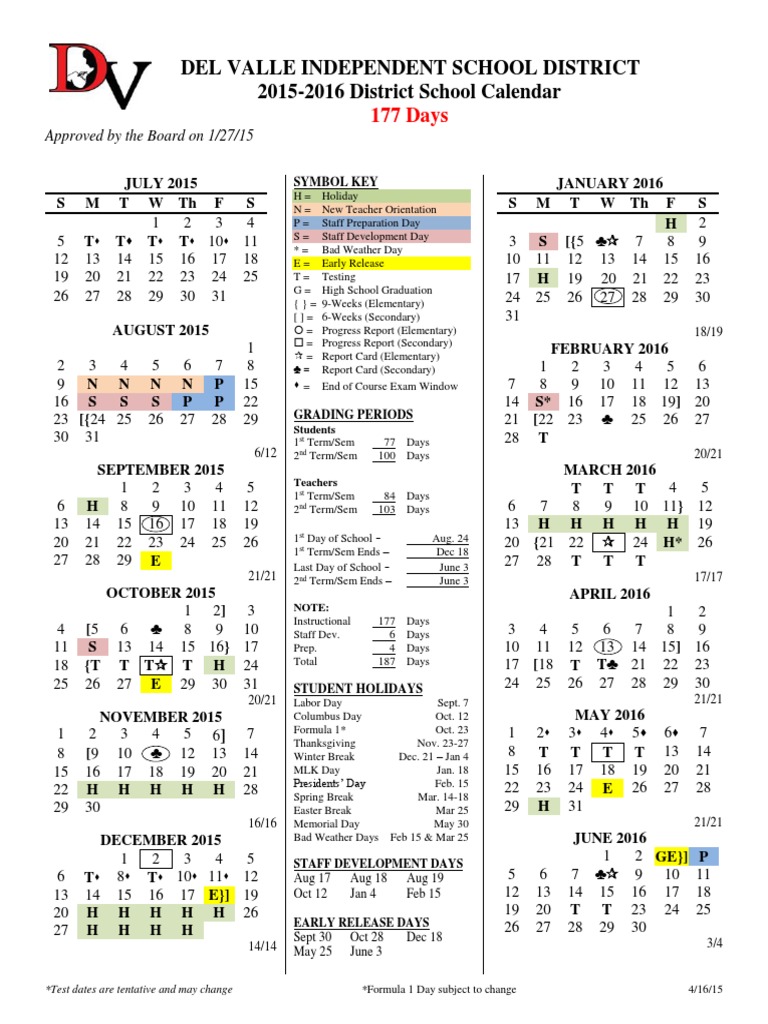 Del Valle Isd Calendar prntbl.concejomunicipaldechinu.gov.co
