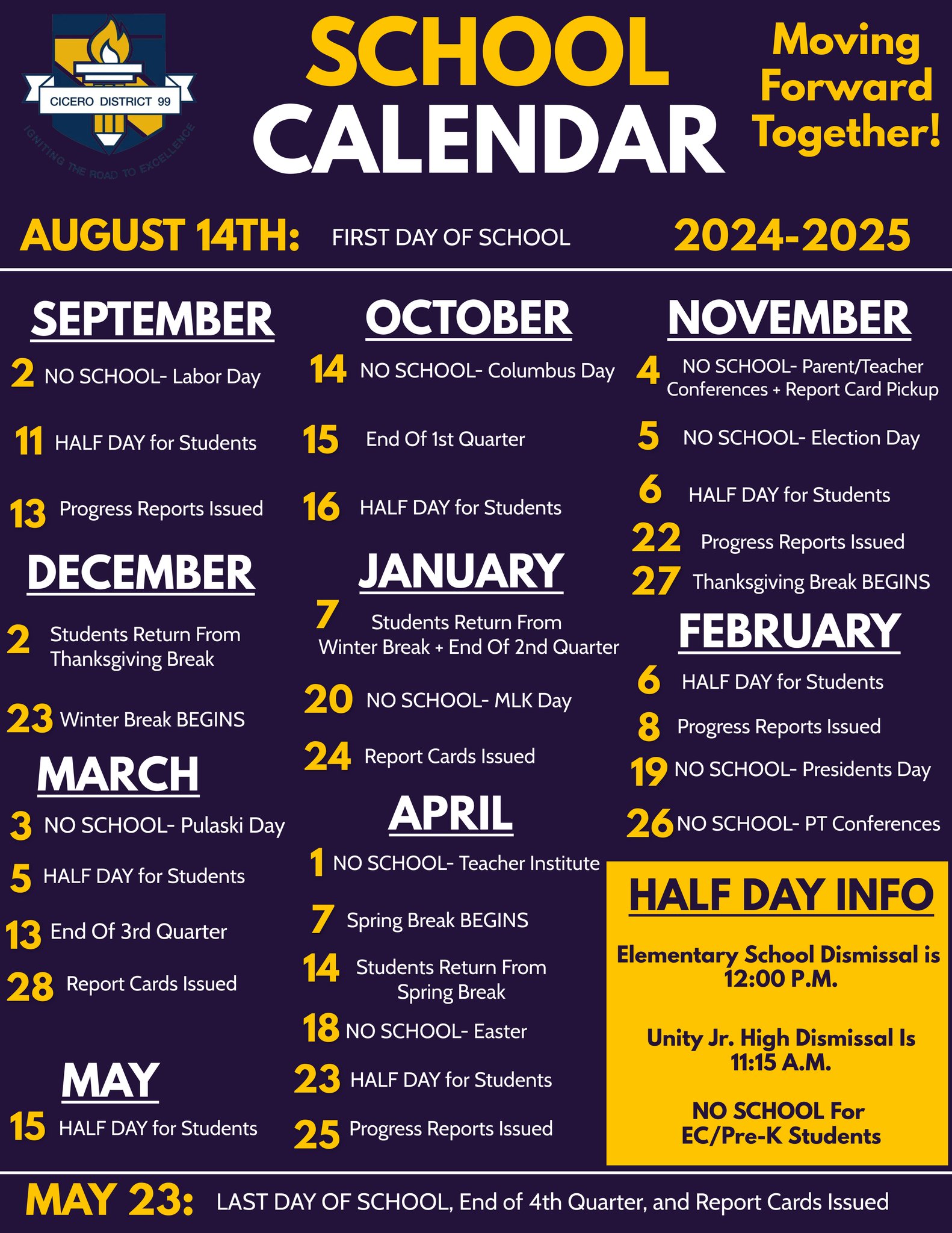 20232024 Cicero School District 99 Calendar Chicago Parent