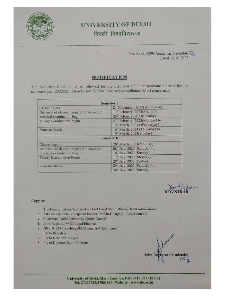 Delhi University Academic Calendar 202324 Released For UG