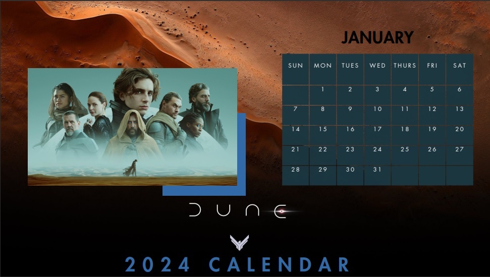 DUNE Calendar 2024, Printable Wall Calendar, Science Fiction Decor