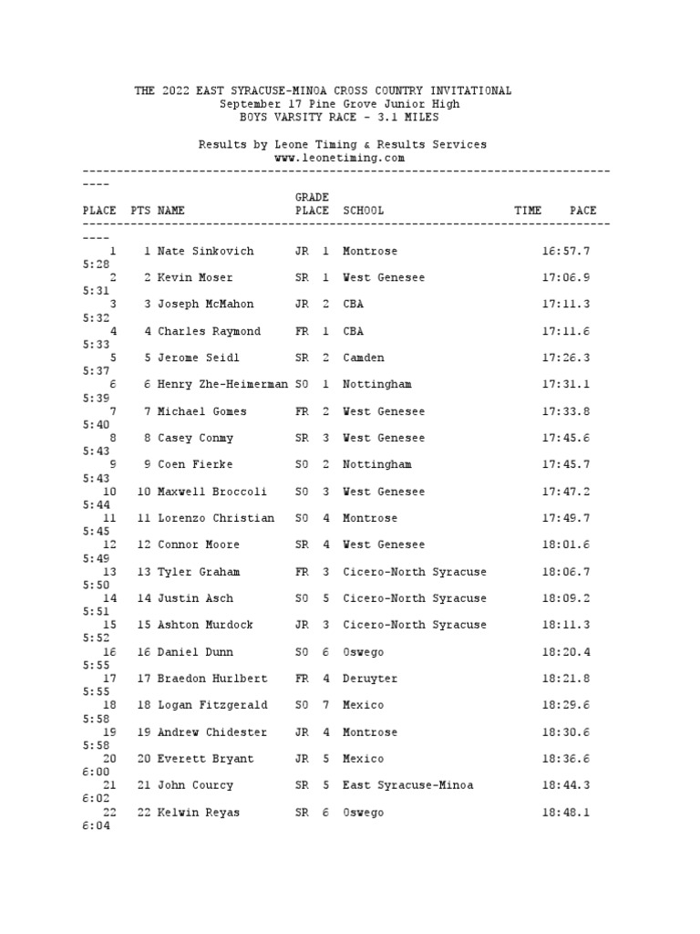The 2022 East Syracuse Minoa Cross Country Invitational PDF