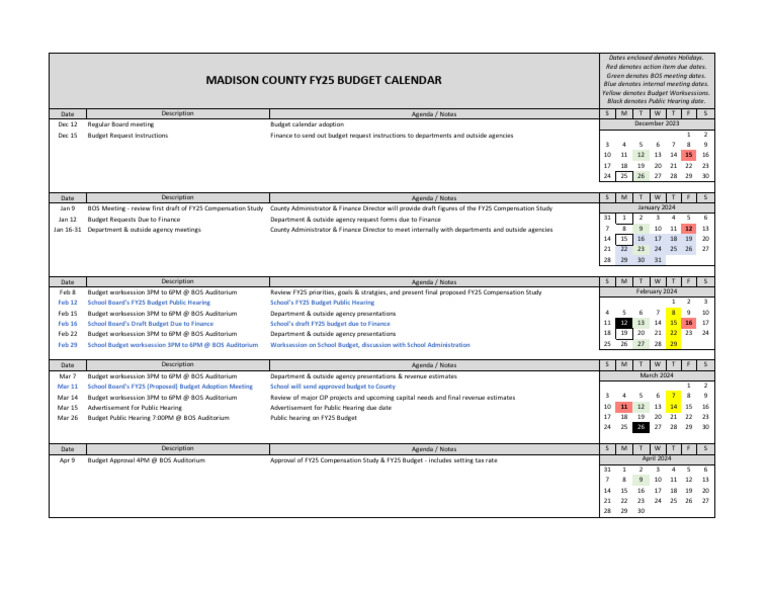 Madison County FY25 Budget Calendar PDF Government Finances Taxes