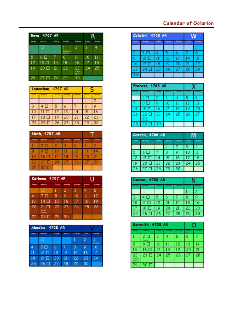 This Interactive Calendar Is For The Golarion Campaign Setting In The Pathfinder Role Playing Game System (Pfrpg), As Defined By The Inner Sea World Guide.