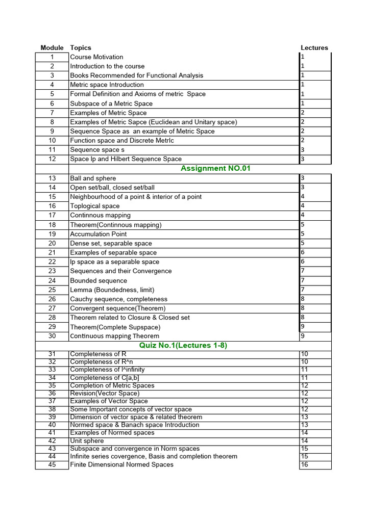 Course Calendar PDF Hilbert Space Linear Map