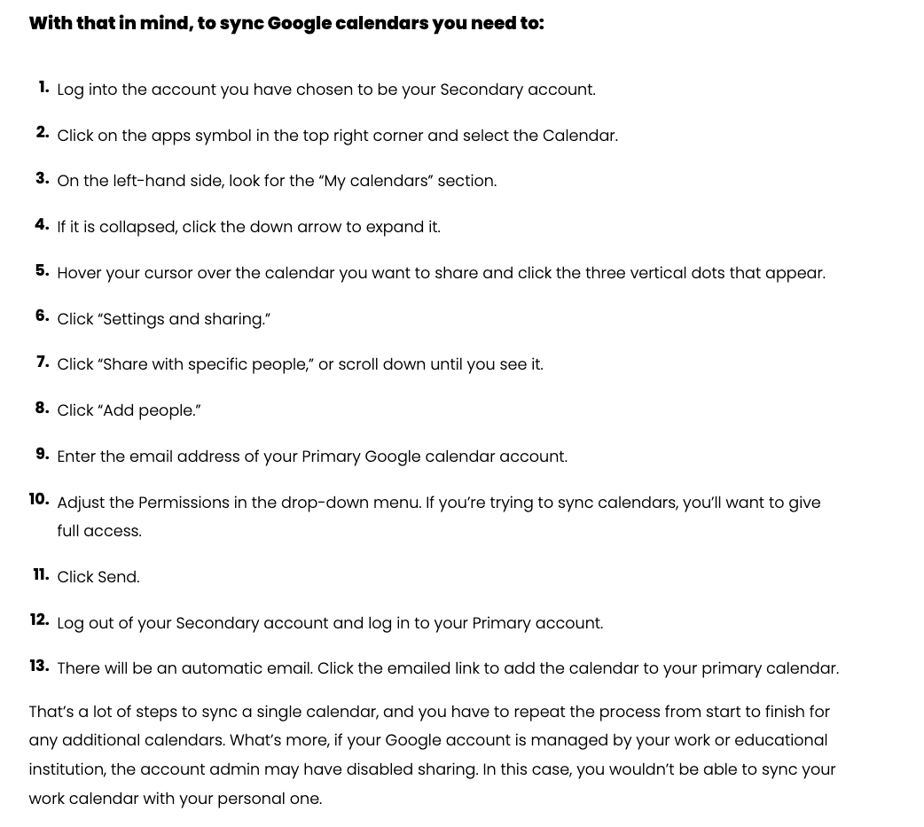 How to sync two Google calendars