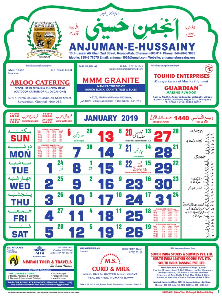Anjuman E Hussaini Calendar 2020 Calendar Printables Free Templates