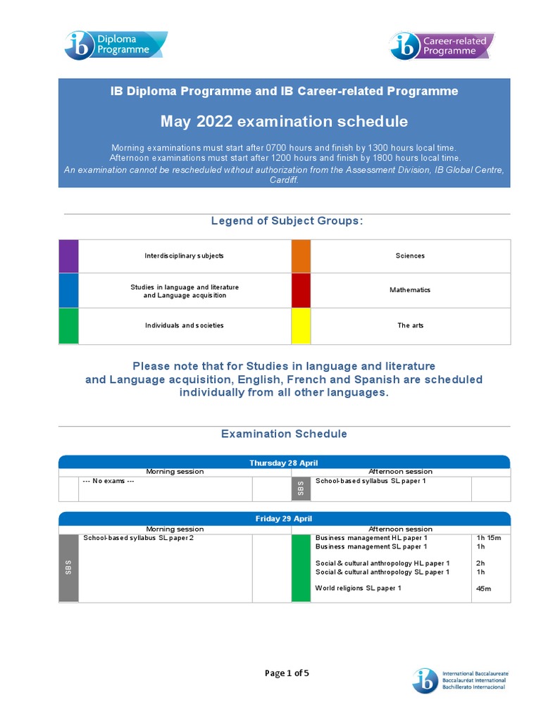May 2022 Ib Exam Calendar PDF