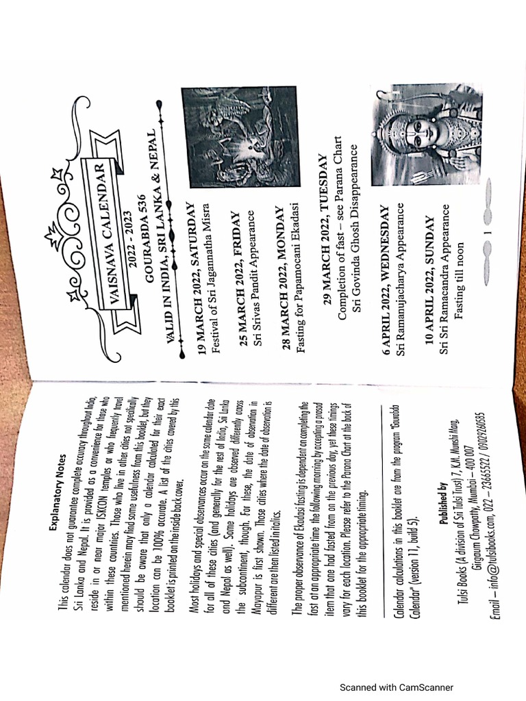 Iskcon Vaisnava Calendar 19 Mar 22 To 7 Mar 2023 PDF