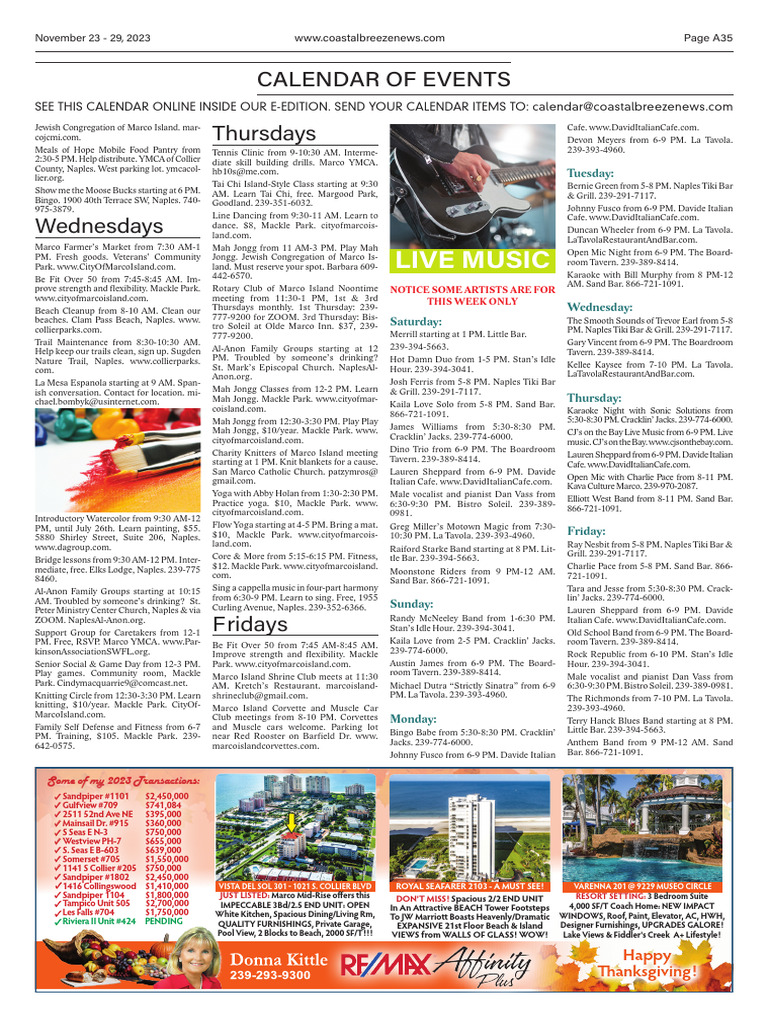 Live Music Calendar of Events Thursdays PDF