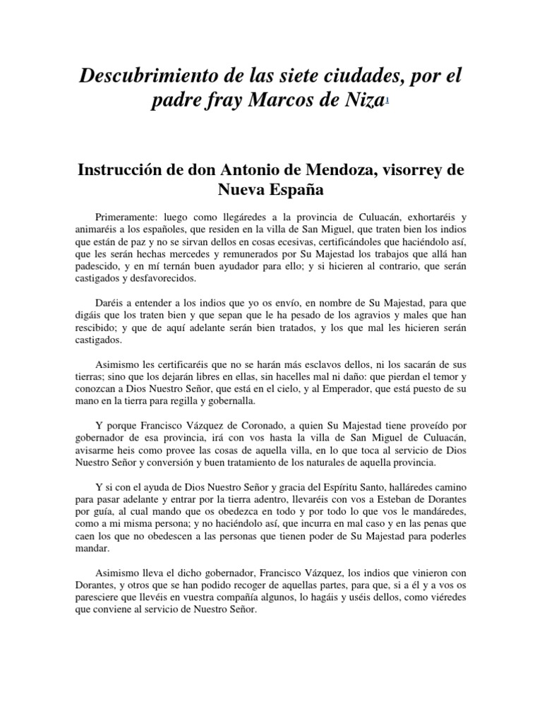 Fray Marcos de Niza PDF Nueva españa España