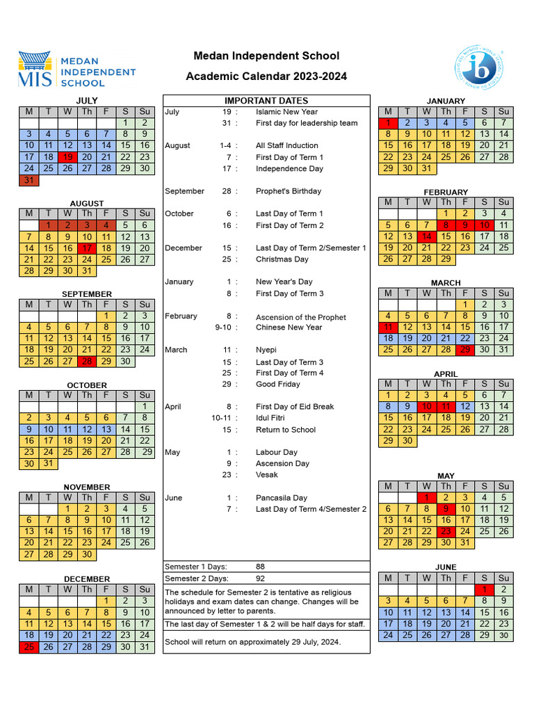 MIS Calendar 2023 2024 PDF Academic Term Religious Holidays