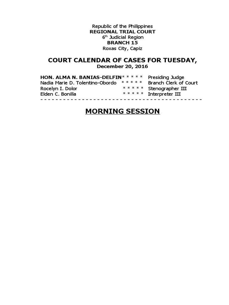 Court Calendar of Cases For Tuesday, Morning Session PDF