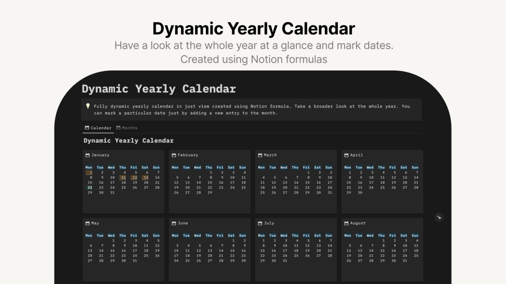 Notion Dynamic Calendar - A collection of the best calendar templates and widgets for notion. Imagine having your deadlines, meetings, and events in one view. Notion has unveiled an exciting new feature that allows users to set up automated actions that run on a regular schedule. Master the notion dynamic calendar with our expert guide, featuring customizable templates, calendar views, and task management integrations for enhanced productivity and organization. It provides a visual overview of your tasks, helping you to prioritize and allocate your time efficiently. You can mark a particular date just by adding a new entry to the month. Notion calendar lets you manage your time and your work in unison. This daily planner notion template is designed to help you stay focused, organized, and intentional throughout your day. You can now effectively integrate your calendar with notion (only available for google calendar accounts as of january 2024), and use notion calendar as the only calendar. Calendars let you visualize how database items connect to certain dates. Notion calendar allows you to view your notion database items alongside your google calendar events. Notion has unveiled an exciting new feature that allows users to set up automated actions that run on a regular schedule. But don't want to manually set the date all the time, this will dynamically check any meetings. Whether you're managing work, personal tasks, or just trying. This daily planner notion template is designed to help you stay focused, organized, and intentional throughout your day. Notion calendar and notion work together to create a seamless experience as you go from meetings to notes to projects 🪄. Imagine having your deadlines, meetings, and events in one view. To connect notion calendar to notion: A collection of the best calendar templates and widgets for notion. Notion integration with google calendar. In this guide, you’ll learn how to get started with notion calendar and some valuable tips and tricks. Notion integration with google calendar. Notion calendar allows you to view your notion database items alongside your google calendar events. But don't want to manually set the date all the time, this will dynamically check any meetings. By linking your content planner. This daily planner notion template is designed to help you stay focused, organized, and intentional throughout your day. Whether you're managing work, personal tasks, or just trying. Take a broader look at the whole year. Easily keep track of important dates in notion. A task calendar template in notion can streamline the process of organizing your. You can now effectively integrate your calendar with notion (only available for google calendar accounts as of january 2024), and use notion calendar as the only calendar. Take a broader look at the whole year. Notion integration with google calendar. By linking your content planner & calendar template to the notion calendar, you create a dynamic content calendar that keeps. Take a broader look at the whole year. Calendars let you visualize how database items connect to certain dates. This daily planner notion template is designed to help you stay focused, organized, and intentional throughout your day. Fully dynamic yearly calendar in just view created using notion formula. It will only take five. You can mark a particular date just by adding a new entry to the month. If you want to use a calendar view to show your upcoming meetings by company/project etc. This offers a streamlined way to see project timelines and task due dates alongside. You can now effectively integrate your calendar with notion (only available for google calendar accounts. This daily planner notion template is designed to help you stay focused, organized, and intentional throughout your day. Notion calendar allows you to view your notion database items alongside your google calendar events. You can mark a particular date just by adding a new entry to the month. Easily keep track of important dates in notion. It provides a visual. Master the notion dynamic calendar with our expert guide, featuring customizable templates, calendar views, and task management integrations for enhanced productivity and organization. It provides a visual overview of your tasks, helping you to prioritize and allocate your time efficiently. Imagine having your deadlines, meetings, and events in one view. Notion integration with google calendar. Notion calendar lets you manage. Fully dynamic yearly calendar in just view created using notion formula. Whether you're managing work, personal tasks, or just trying. Notion calendar allows you to view your notion database items alongside your google calendar events. Notion has unveiled an exciting new feature that allows users to set up automated actions that run on a regular schedule. In this guide, you’ll. This daily planner notion template is designed to help you stay focused, organized, and intentional throughout your day. Imagine having your deadlines, meetings, and events in one view. By linking your content planner & calendar template to the notion calendar, you create a dynamic content calendar that keeps track of all your social media posts. This powerful addition to database. If you want to use a calendar view to show your upcoming meetings by company/project etc. This offers a streamlined way to see project timelines and task due dates alongside. Whether you're managing work, personal tasks, or just trying. Fully dynamic yearly calendar in just view created using notion formula. You can mark a particular date just by adding a. With google calendar integration, you can plan your personal and. Whether you're managing work, personal tasks, or just trying. It will only take five. Master the notion dynamic calendar with our expert guide, featuring customizable templates, calendar views, and task management integrations for enhanced productivity and organization. Notion calendar and notion work toge