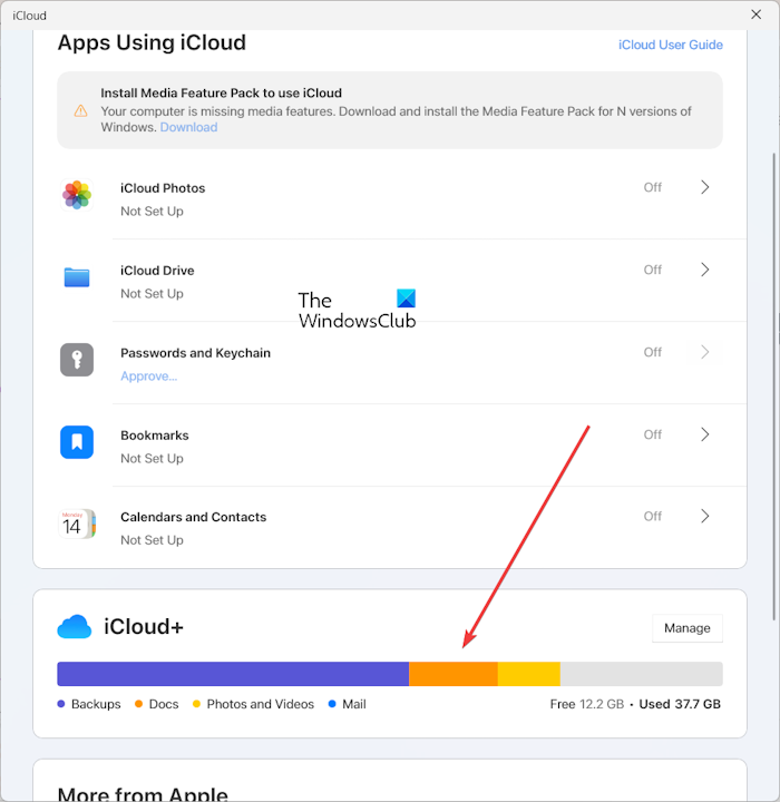 ![iCloud calendar not syncing in Outlook [Fix]](https://www.thewindowsclub.com/wp-content/uploads/2024/03/icloud-storage-space.png)
