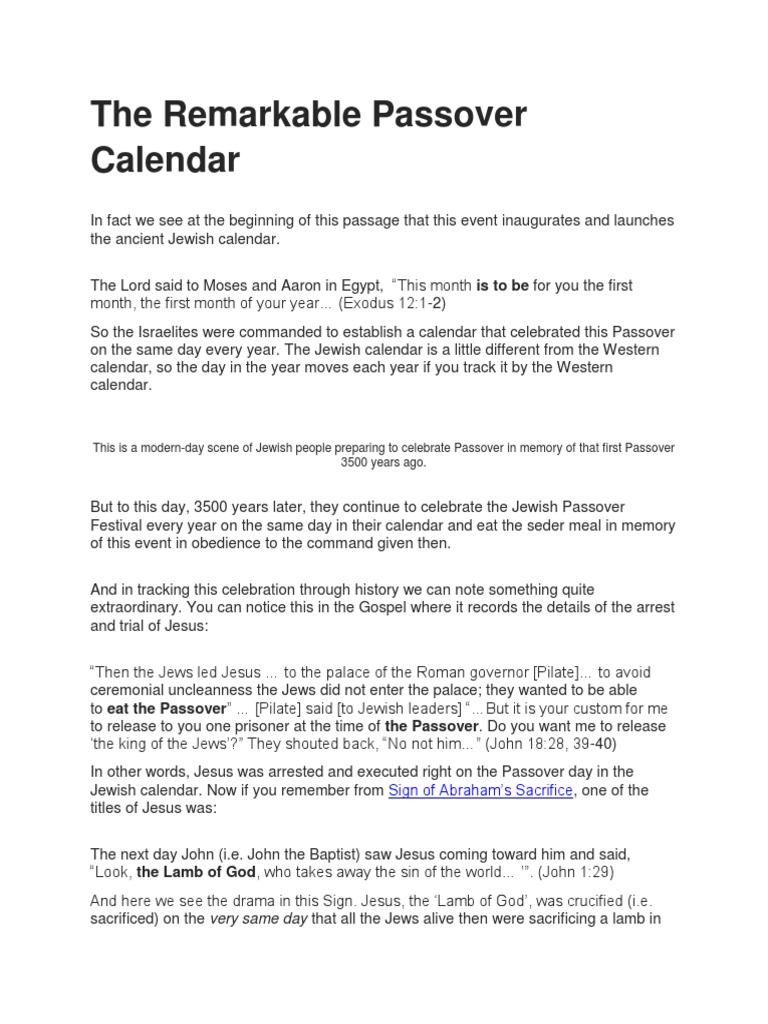 Passover 2020 Calendar World Events and the Bible