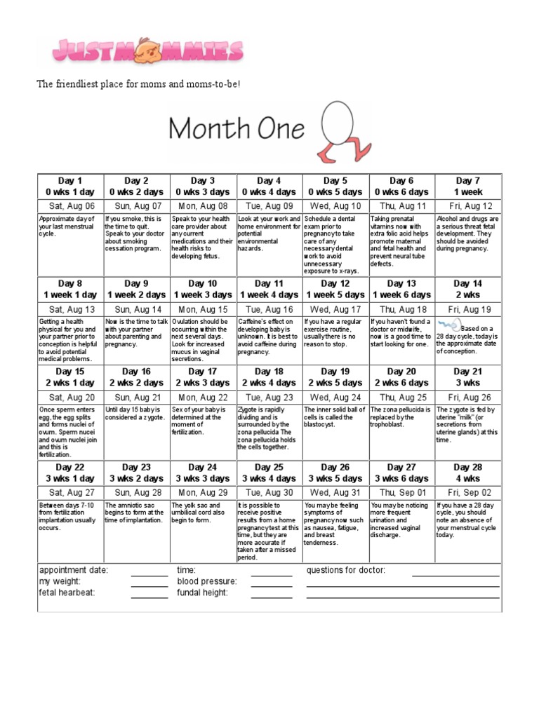Printable Pregnancy Calendar Implantation Human Embryo Pregnancy Ponasa