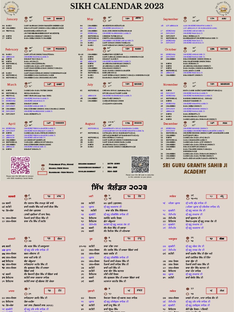 SGPC Nanakshahi Calendar 554 2022 23 PDF Monotheistic Religions