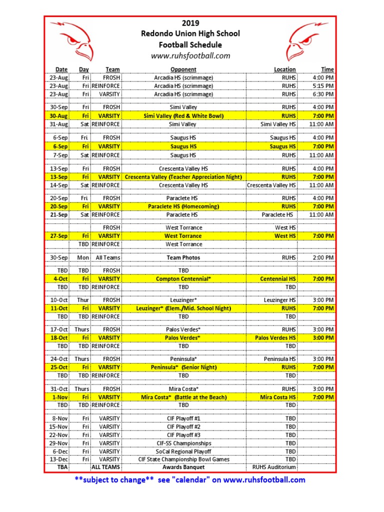 RUHS Football Schedule PDF Leisure Sports