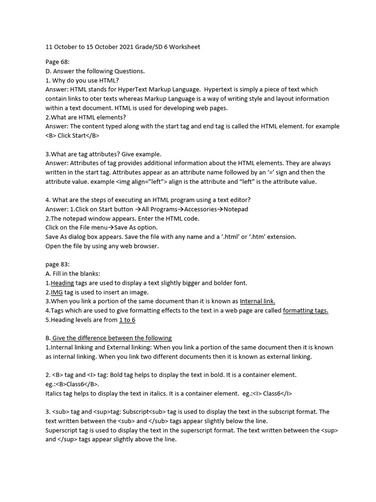 11 Octoberto 21 October 2021 Grade SD6 Woksheet PDF Html Element