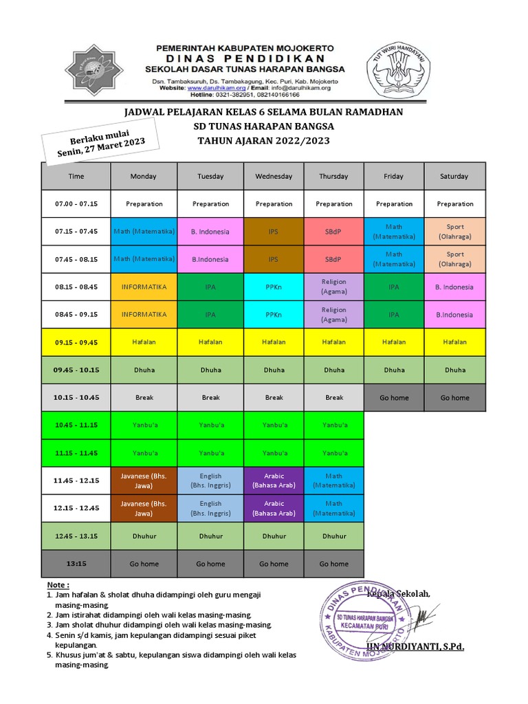 Jadwal Ramadhan SD6 2223 PDF PDF