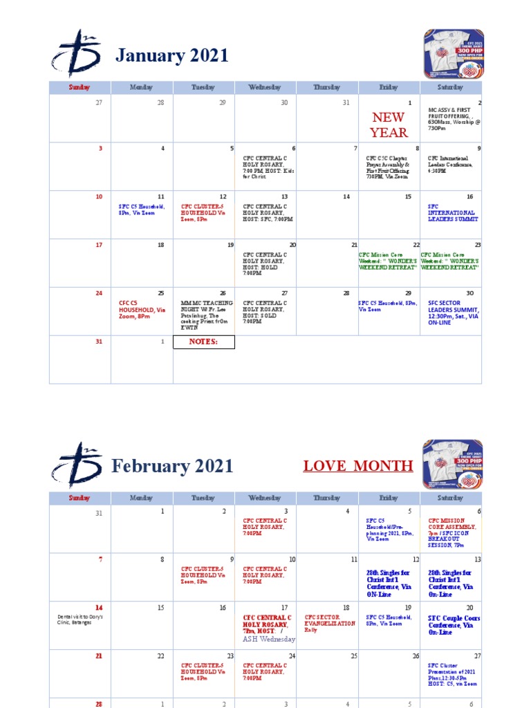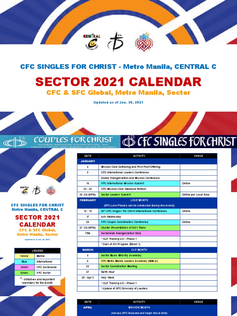 CFC SFC Central C 2021 Calendar 01302021 PDF Christian Behaviour